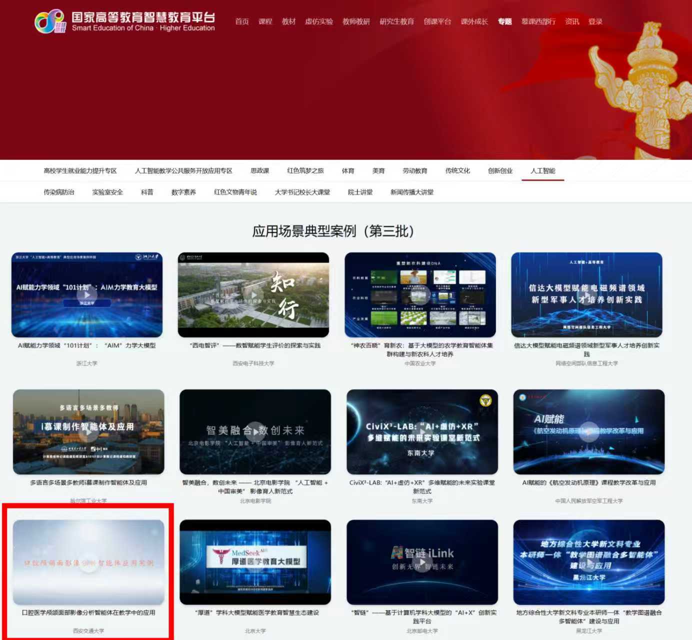 所有案例引见视频正在国度高档教育聪慧教育平台进行推广展现(国度高档教育聪慧教育平台-人工智能专区;)。平台可供给智能化备课、预习、考试、帮教、学伴、客不雅题批阅、视频字幕翻译等功能,通过实施“人工智能先导打算”,开展针对性培训,拓展平台功能模块,截止目前已为25279位师生、4738门课程供给办事,据统计,